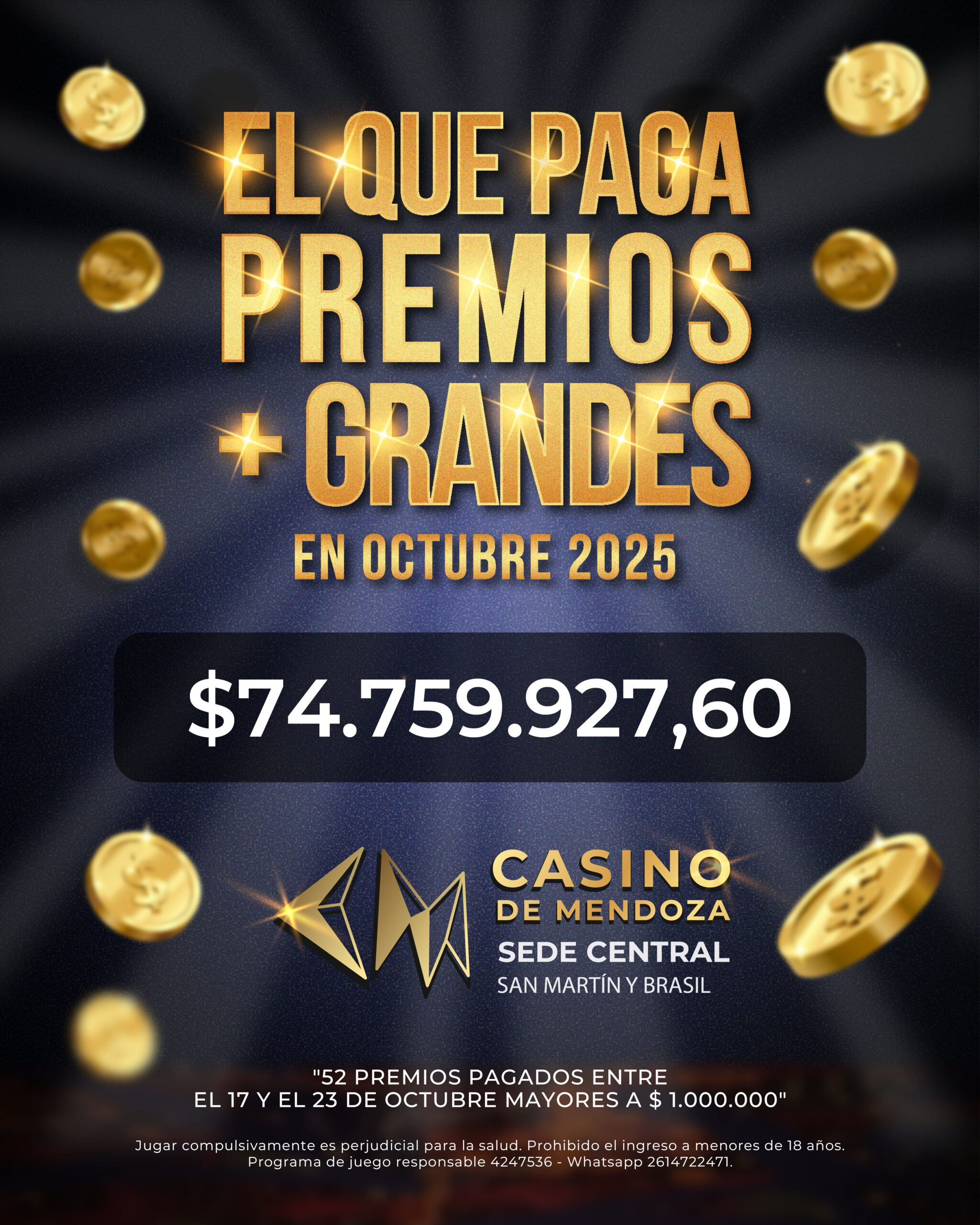 Jugar compulsivamente es perjudicial para la salud. Prohibido el ingreso a menores de 18 años. Programa de juego responsable 4247536 - Whatsapp 2614722471.